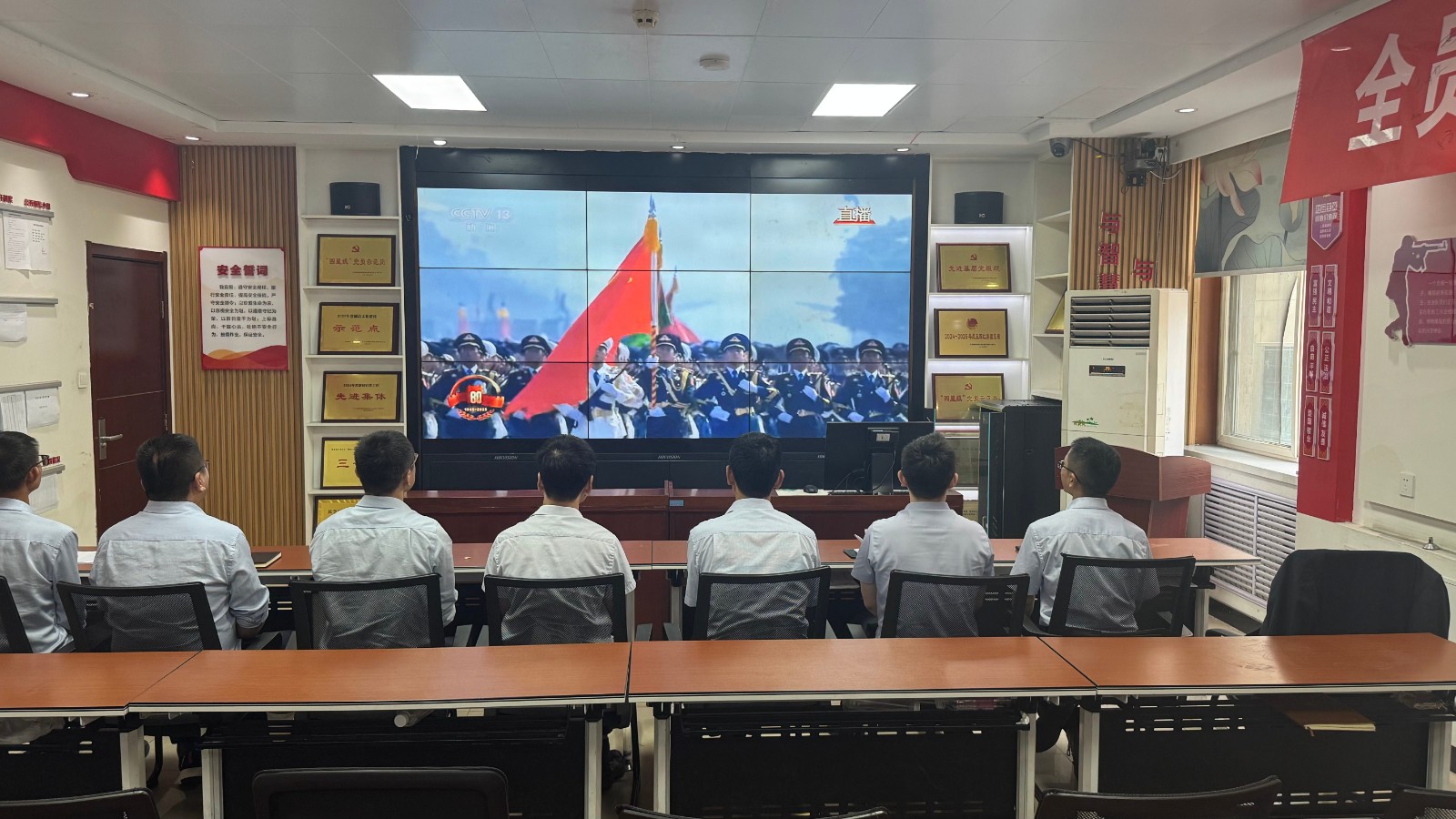 歷史燭照未來,精神永續(xù)傳承。為深切緬懷在抗日戰(zhàn)爭中英勇獻(xiàn)身的革命先烈,大力弘揚(yáng)偉大的抗戰(zhàn)精神,引導(dǎo)全體黨員、職工銘記光輝歷史、堅定理想信念、強(qiáng)化責(zé)任擔(dān)當(dāng),9月3日,機(jī)運(yùn)工區(qū)黨支部組織開展了“銘記歷史偉業(yè),傳承紅色基因”主題黨日活動,組織全體黨員集中觀看紀(jì)念中國人民抗日戰(zhàn)爭暨世界反法西斯戰(zhàn)爭勝利80周年閱兵儀式現(xiàn)場直播。上午九時整,機(jī)運(yùn)工區(qū)全體黨懷著無比崇敬與激動的心情,目光齊聚屏幕。伴隨著激昂雄壯的國歌奏響,鮮艷的五星紅旗在天安門廣場冉冉升起,大家心潮澎湃,肅然起敬。隨后,規(guī)模宏大、氣勢磅礴的閱兵式正式開始。屏幕上,一個個整齊劃一、威武雄壯的徒步方隊,邁著鏗鏘有力、撼人心魄的步伐走過檢閱臺,堅毅的眼神、挺拔的身姿,充分展現(xiàn)了新時代軍人聽黨指揮的忠誠品格和能打勝仗的過硬本領(lǐng);一列列代表著國家科技實(shí)力與國防現(xiàn)代化建設(shè)最新成果的裝備方隊,鐵流滾滾,氣勢如虹,尖端武器依次亮相,彰顯了捍衛(wèi)國家主權(quán)、安全、發(fā)展利益的堅定決心與強(qiáng)大能力;雄鷹呼嘯,劃破長空,戰(zhàn)機(jī)編隊以精準(zhǔn)的隊形和磅礴的氣勢接受檢閱,描繪出壯美的藍(lán)天畫卷,宣示著捍衛(wèi)國家領(lǐng)空安全的鋼鐵意志。整個閱兵過程,秩序井然、威武雄壯、氣勢恢宏,生動詮釋了人民軍隊“聽黨指揮、能打勝仗、作風(fēng)優(yōu)良”的強(qiáng)軍目標(biāo),全方位展示了在黨的堅強(qiáng)領(lǐng)導(dǎo)下,國家日益強(qiáng)大的綜合國力和維護(hù)世界和平的堅定信念。屏幕前,黨員們?nèi)褙炞ⅲ瑹o不被這震撼人心的場面所感染,民族自豪感與榮譽(yù)感油然而生,現(xiàn)場不時響起由衷的贊嘆和熱烈的掌聲。通過本次“銘記歷史偉業(yè),傳承紅色基因”主題黨日活動,機(jī)運(yùn)工區(qū)黨支部全體黨員經(jīng)歷了一次深刻的精神淬煉與思想升華。大家的歷史使命感、民族自豪感、崗位責(zé)任感得到顯著增強(qiáng),紛紛表示以更加飽滿昂揚(yáng)的精神狀態(tài)、更加求真務(wù)實(shí)的工作作風(fēng)、更加開拓創(chuàng)新的進(jìn)取意識,恪盡職守,銳意進(jìn)取,全力以赴保障原煤運(yùn)輸安全高效,為工區(qū)及公司的持續(xù)高質(zhì)量發(fā)展貢獻(xiàn)全部力量!